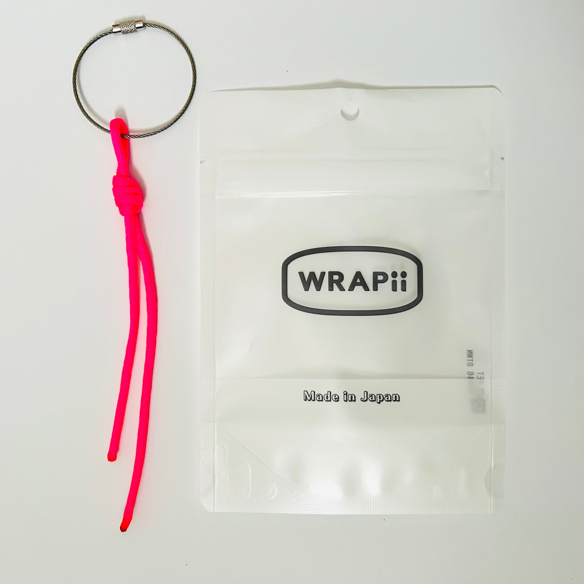 ステンレスのリングに蛍光ピンク1色のパラコードの組み合わせ。