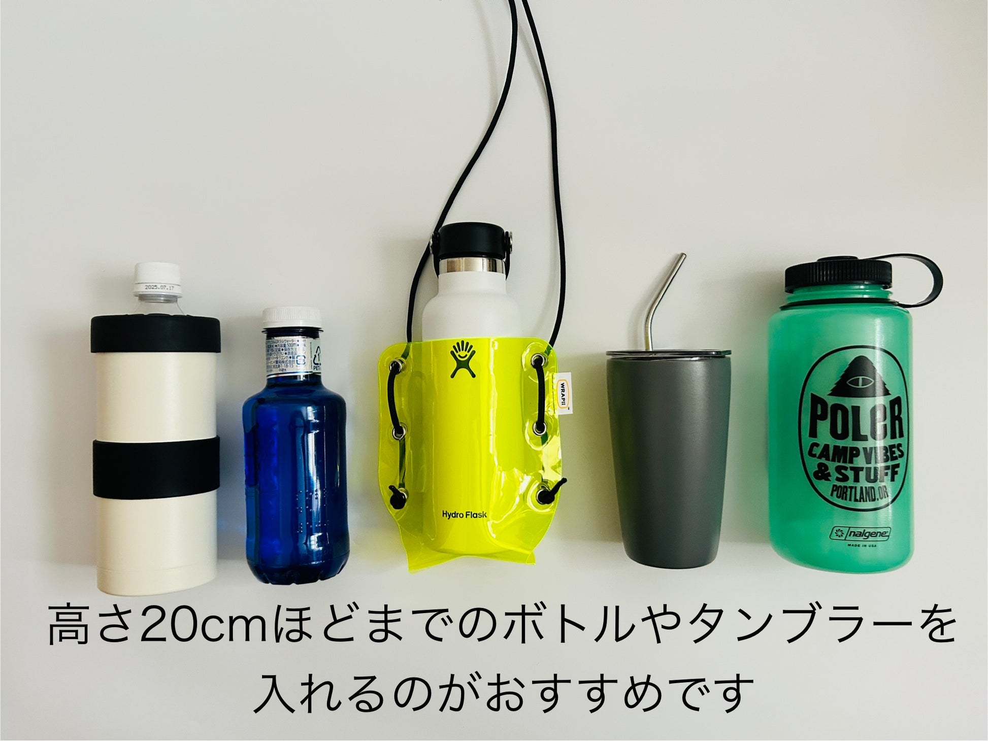 *高さ20㎝ほどまでのボトルやタンブラーを入れるのがおすすめのボトルケースです。