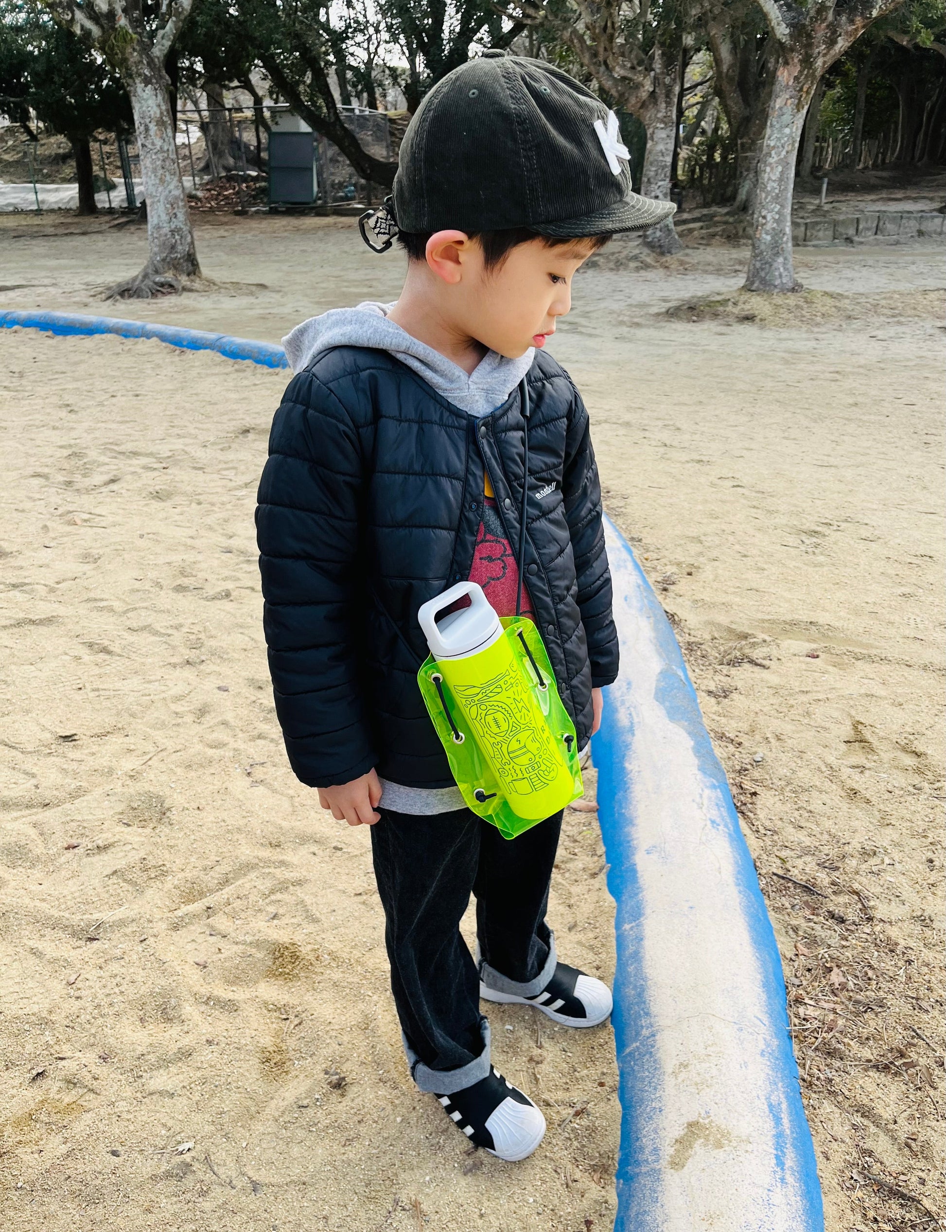 ・ショルダーコードに付属のクッションゴムは重たいボトルを入れた時に、コードが肩へ食い込むのを軽減します。