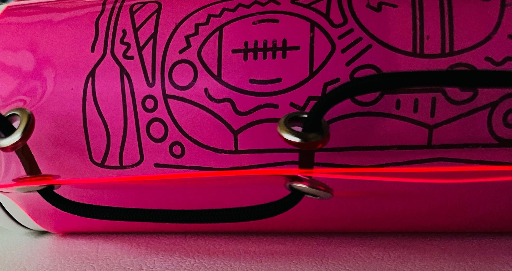 特に、ピンクとイエローは、光を集めて生地の端から発光させるという特徴があります。中に入れるボトルのデザインやカラーとの組み合わせによりケースの表情が変わりますので、ぜひ、自分だけの組み合わせをお楽しみください。